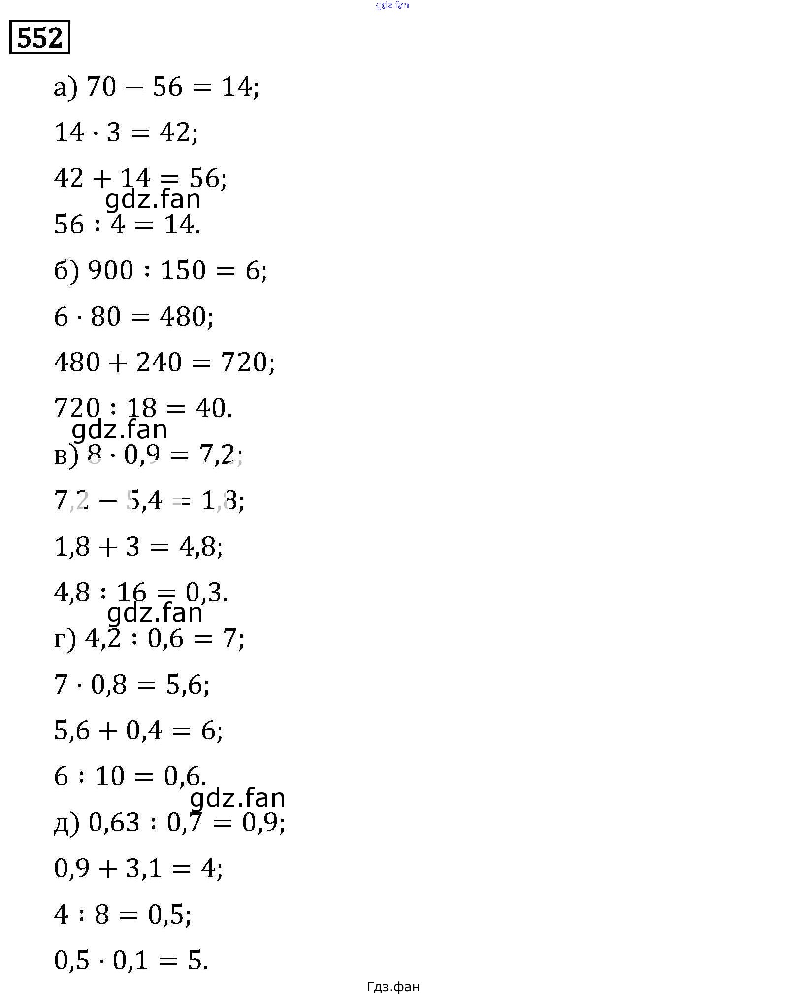 Проверка домашнего задания всегда занимает большое количество времени. На помощь приходит ГДЗ фан по Математике шестого класса. Здесь собраны популярные ответы на 552 (стр. 90) Математика 6 класс Виленкин Н.Я.