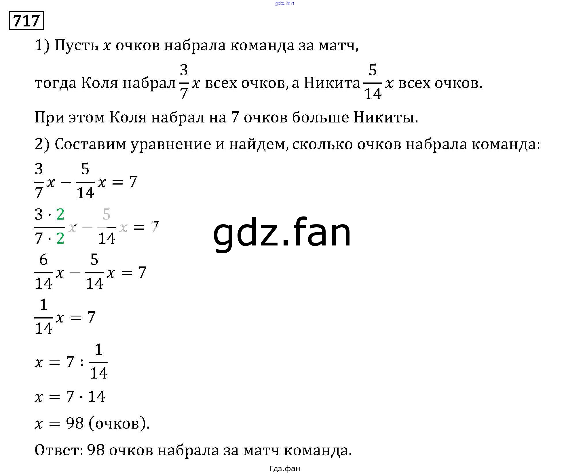 Проверка домашнего задания всегда занимает большое количество времени. На помощь приходит ГДЗ фан по Математике шестого класса. Здесь собраны популярные ответы на 717 (стр. 115) Математика 6 класс Виленкин Н.Я.