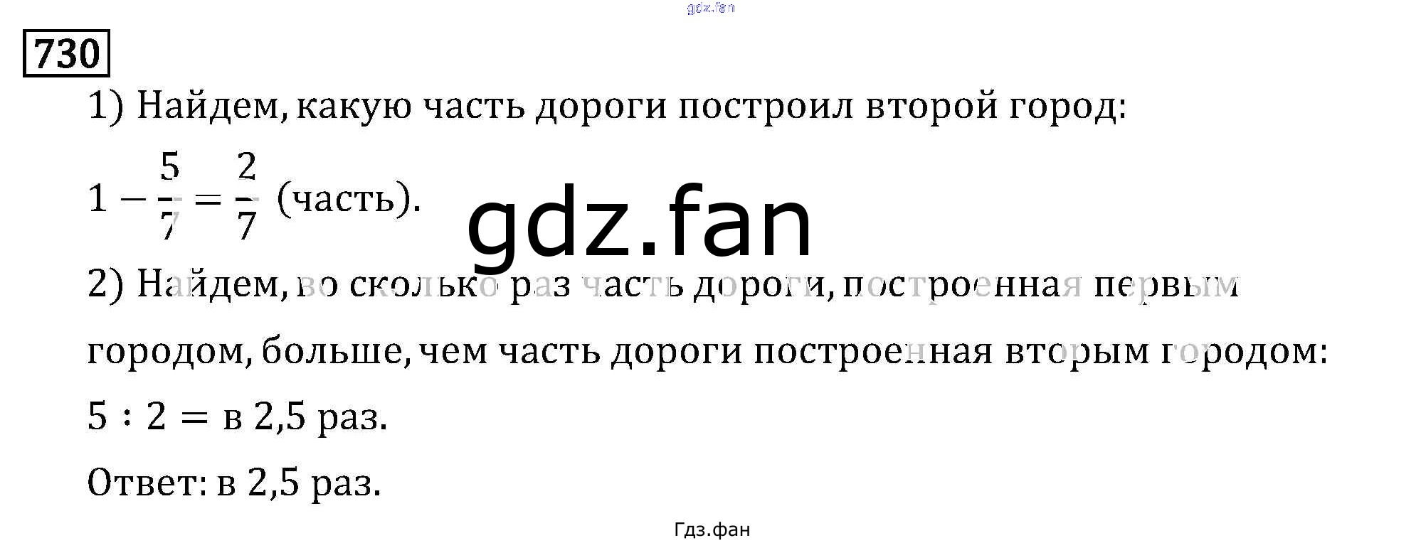 Проверка домашнего задания всегда занимает большое количество времени. На помощь приходит ГДЗ фан по Математике шестого класса. Здесь собраны популярные ответы на 730 (стр. 119) Математика 6 класс Виленкин Н.Я.