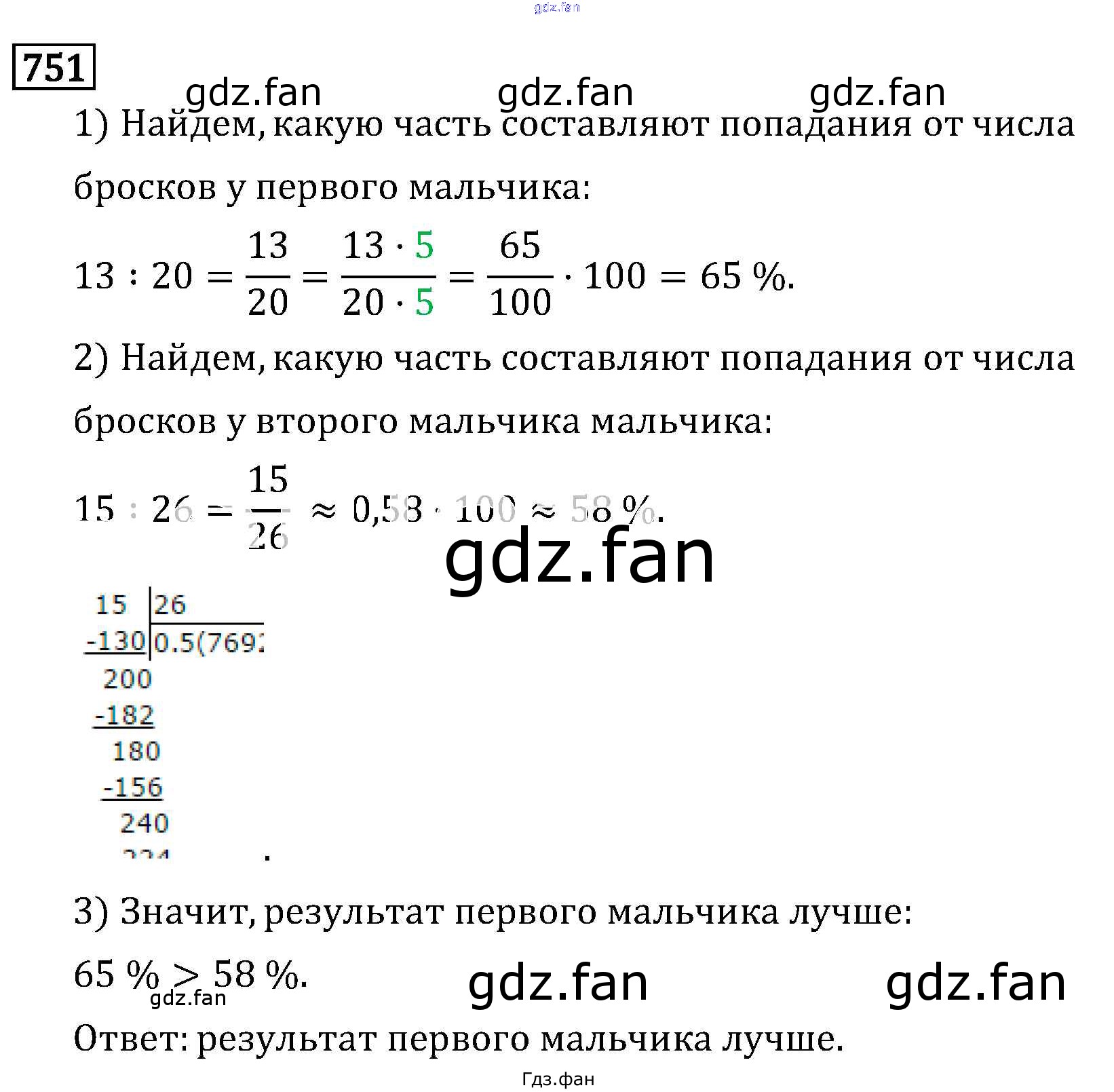 Проверка домашнего задания всегда занимает большое количество времени. На помощь приходит ГДЗ фан по Математике шестого класса. Здесь собраны популярные ответы на 751 (стр. 122) Математика 6 класс Виленкин Н.Я.