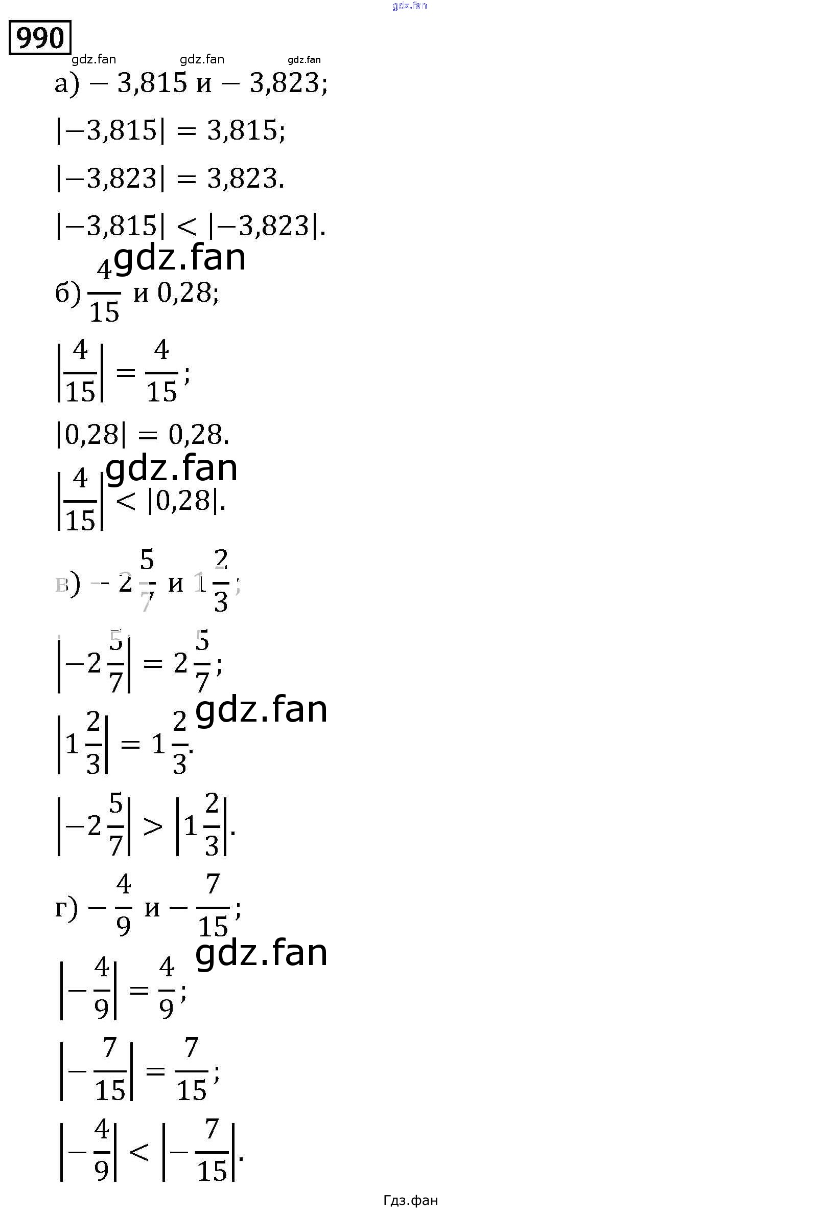 Проверка домашнего задания всегда занимает большое количество времени. На помощь приходит ГДЗ фан по Математике шестого класса. Здесь собраны популярные ответы на 990 (стр. 166) Математика 6 класс Виленкин Н.Я.