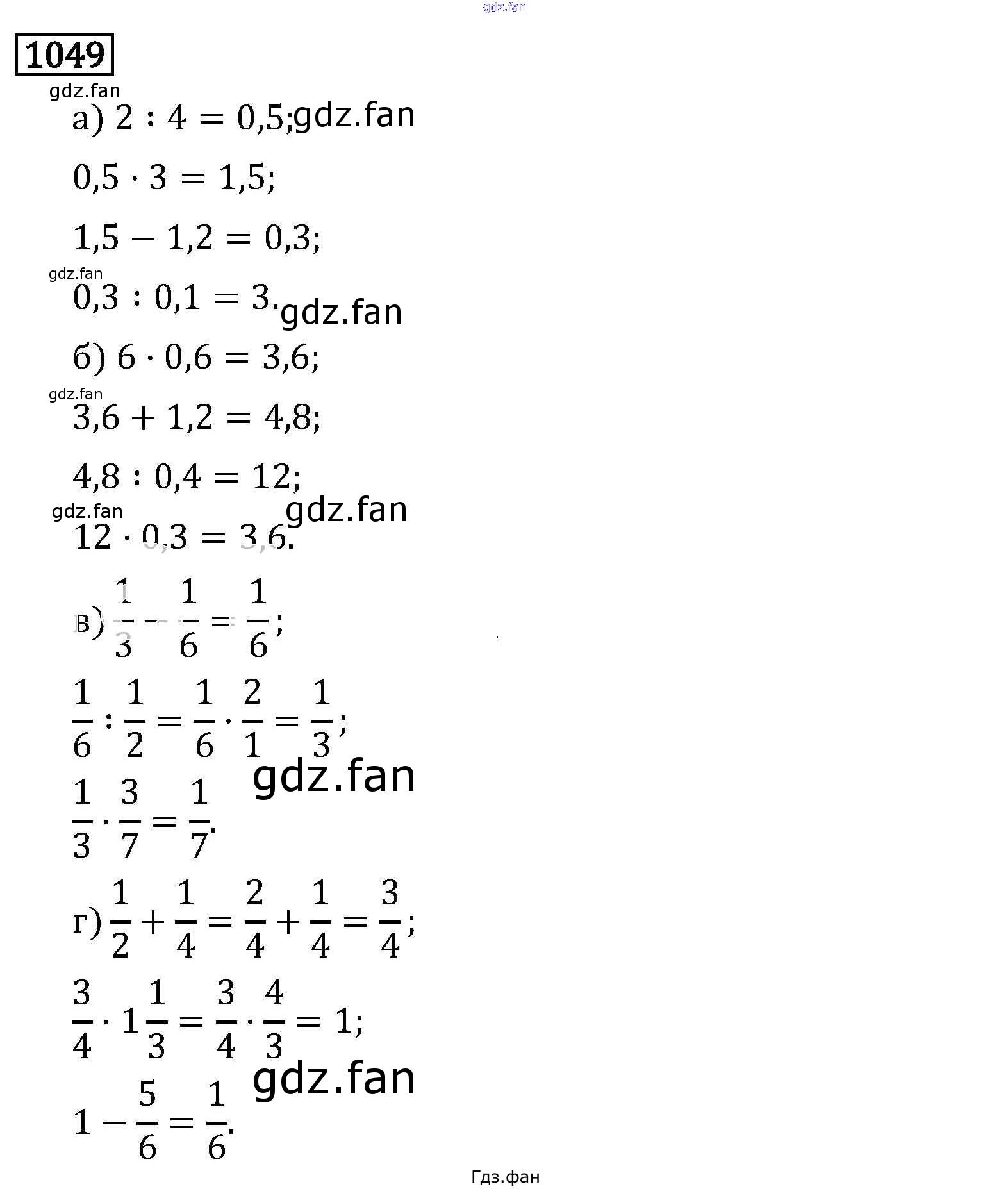 Проверка домашнего задания всегда занимает большое количество времени. На помощь приходит ГДЗ фан по Математике шестого класса. Здесь собраны популярные ответы на 1049 (стр. 177) Математика 6 класс Виленкин Н.Я.
