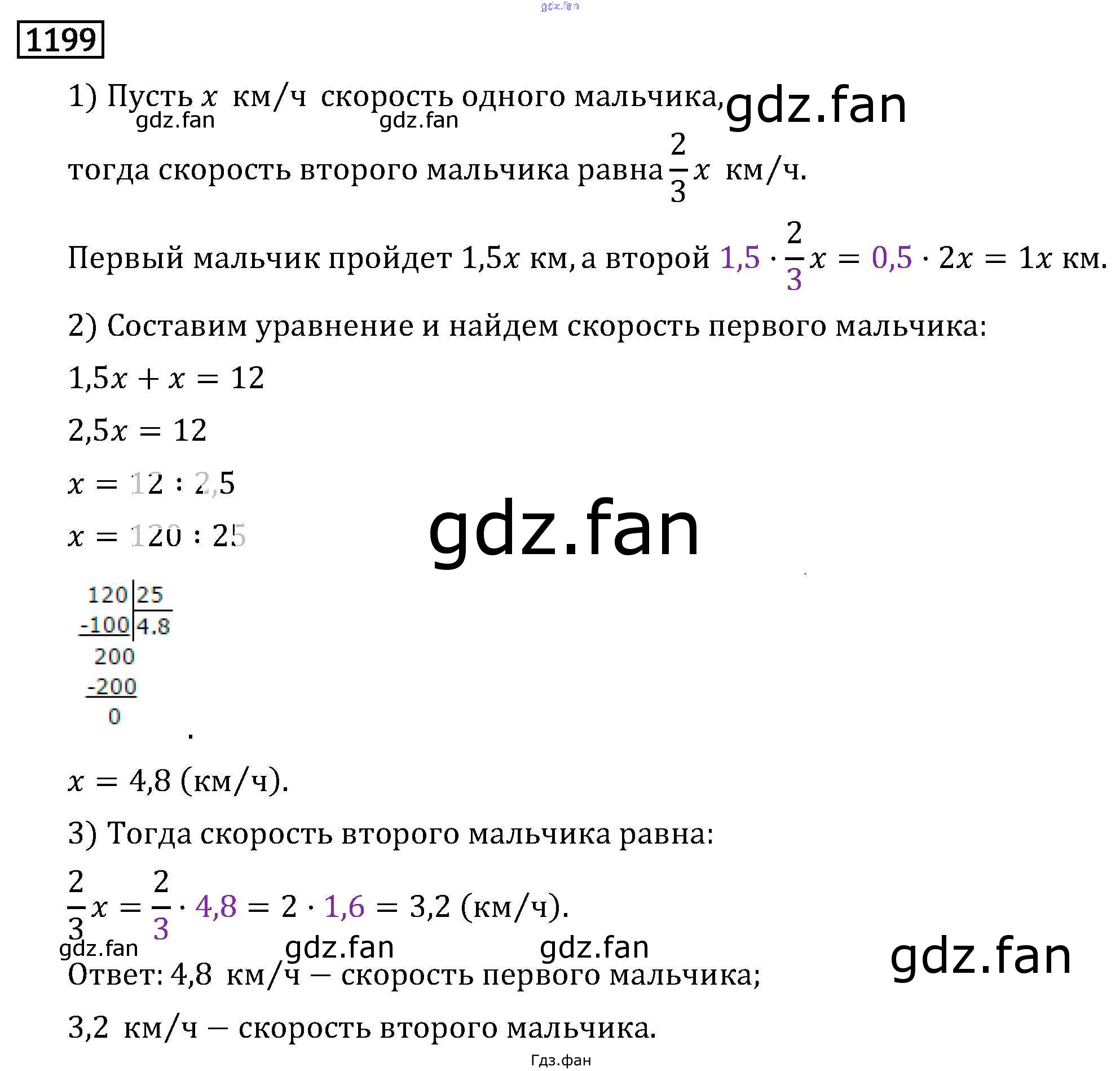 Проверка домашнего задания всегда занимает большое количество времени. На помощь приходит ГДЗ фан по Математике шестого класса. Здесь собраны популярные ответы на 1199 (стр. 207) Математика 6 класс Виленкин Н.Я.