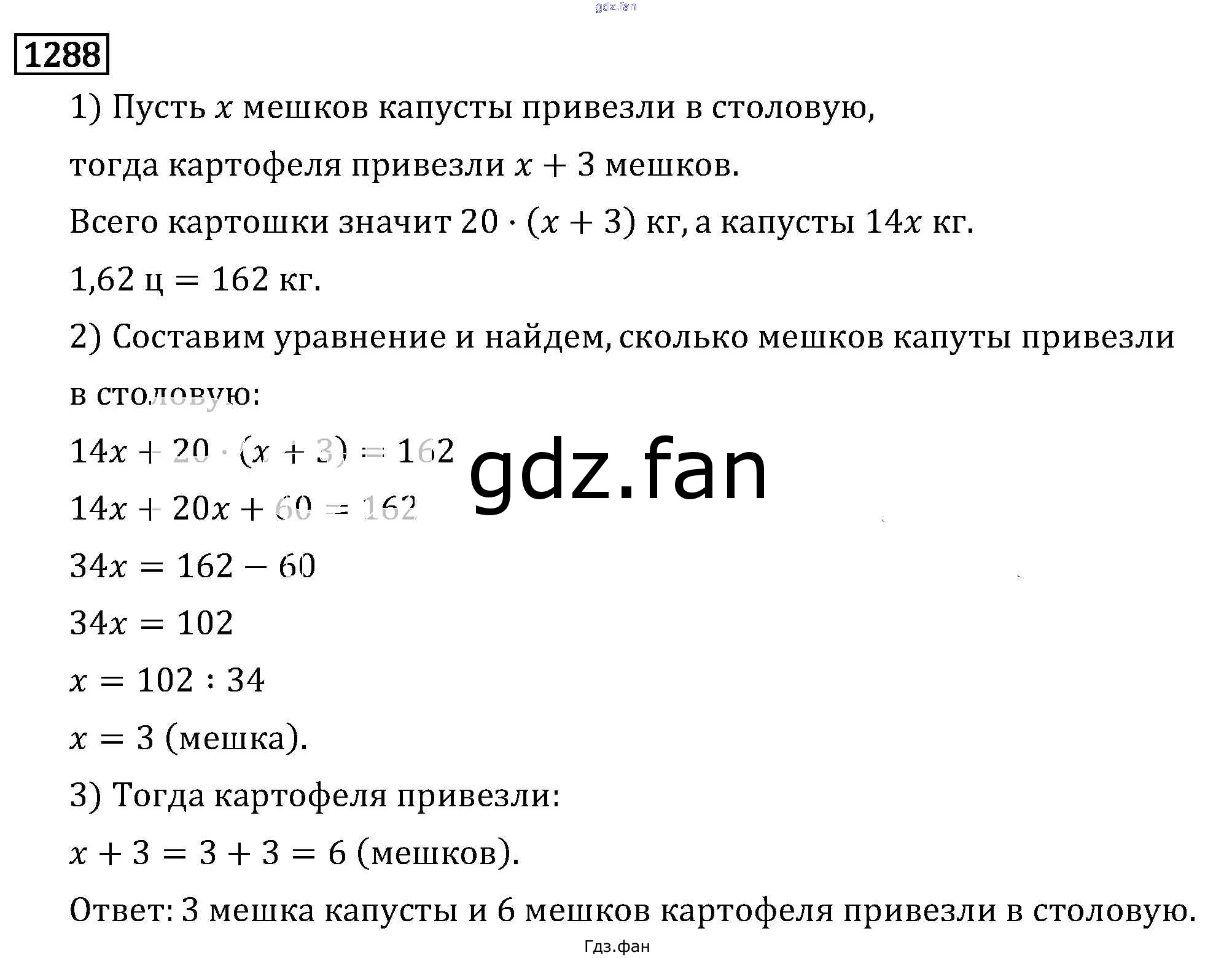 Проверка домашнего задания всегда занимает большое количество времени. На помощь приходит ГДЗ фан по Математике шестого класса. Здесь собраны популярные ответы на 1288 (стр. 226) Математика 6 класс Виленкин Н.Я.
