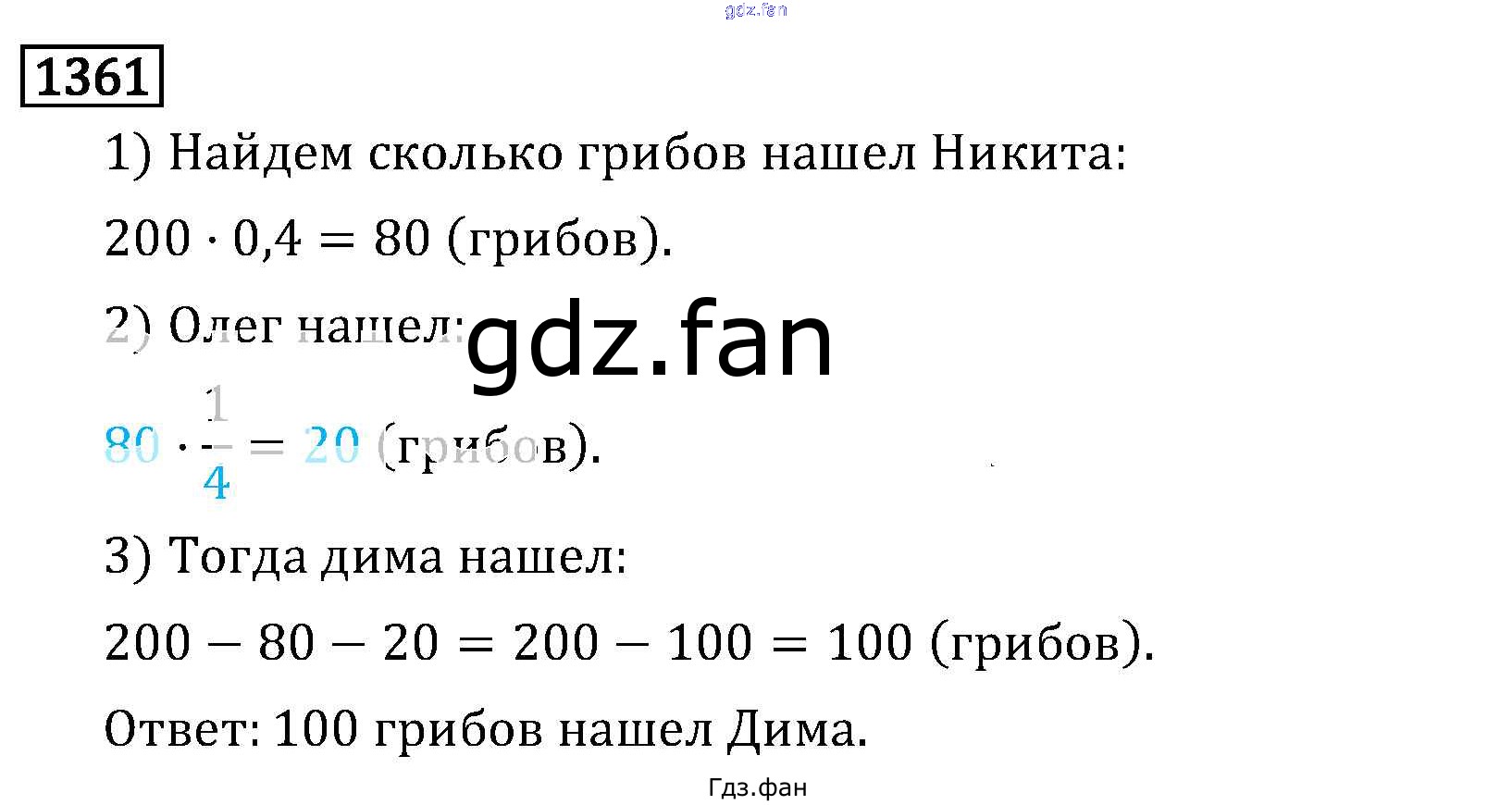 Проверка домашнего задания всегда занимает большое количество времени. На помощь приходит ГДЗ фан по Математике шестого класса. Здесь собраны популярные ответы на 1361 (стр. 238) Математика 6 класс Виленкин Н.Я.