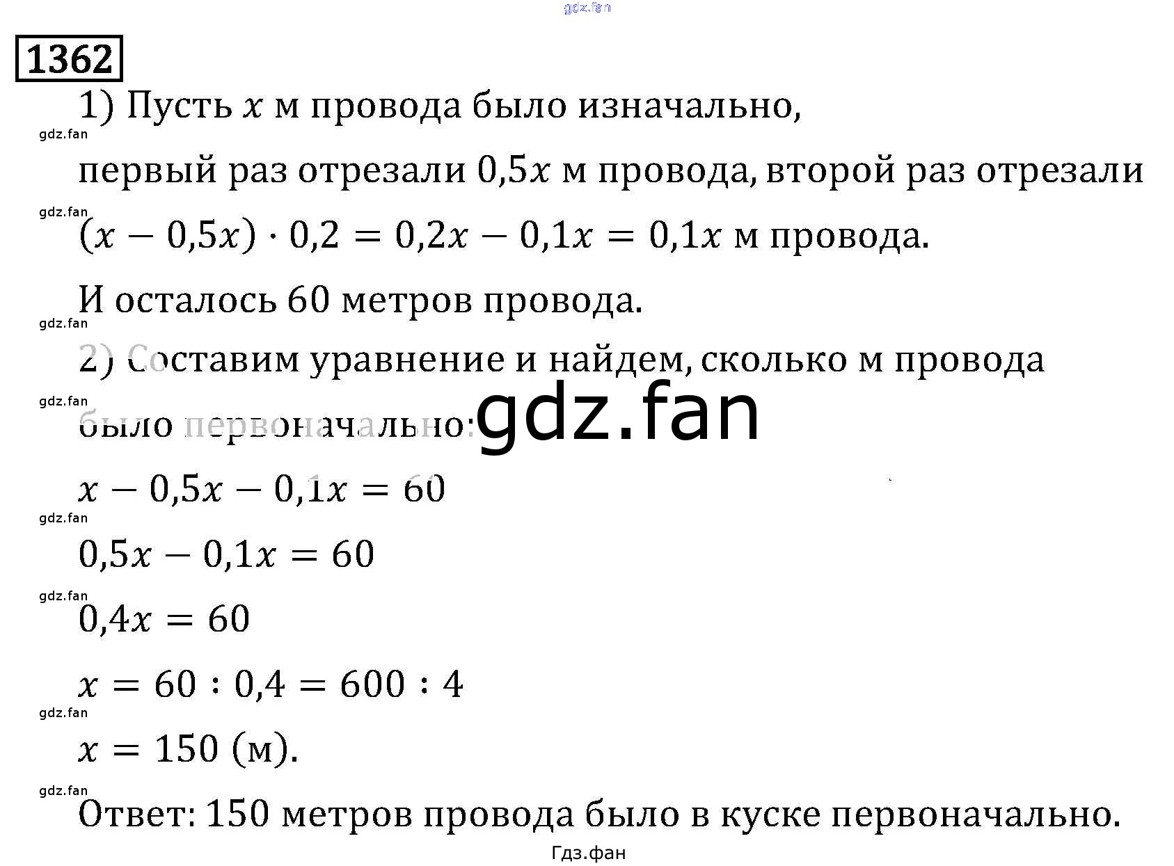Проверка домашнего задания всегда занимает большое количество времени. На помощь приходит ГДЗ фан по Математике шестого класса. Здесь собраны популярные ответы на 1362 (стр. 239) Математика 6 класс Виленкин Н.Я.