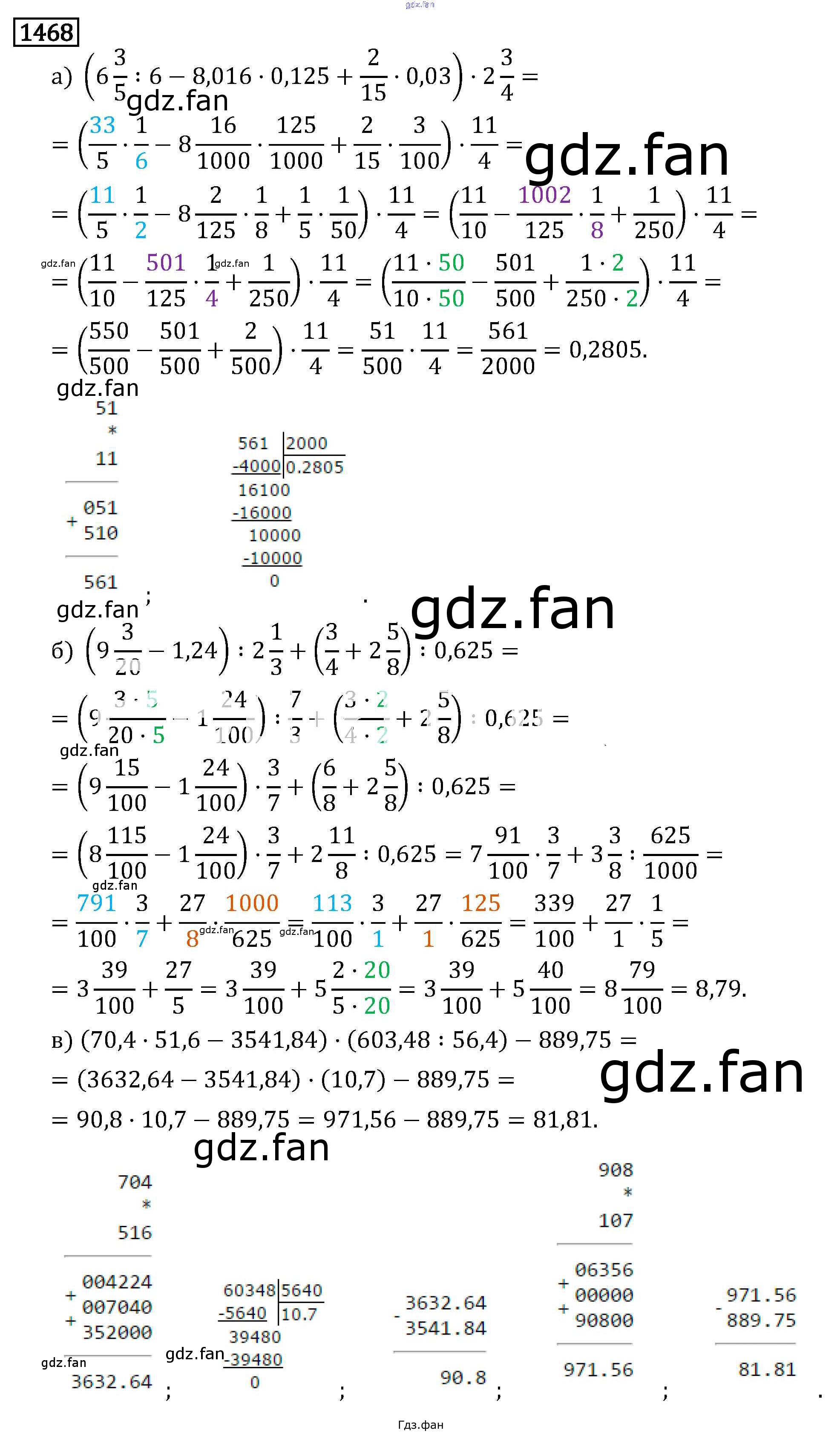 Проверка домашнего задания всегда занимает большое количество времени. На помощь приходит ГДЗ фан по Математике шестого класса. Здесь собраны популярные ответы на 1468 (стр. 262) Математика 6 класс Виленкин Н.Я.