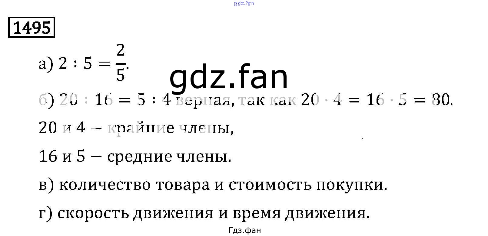 Проверка домашнего задания всегда занимает большое количество времени. На помощь приходит ГДЗ фан по Математике шестого класса. Здесь собраны популярные ответы на 1495 (стр. 268) Математика 6 класс Виленкин Н.Я.