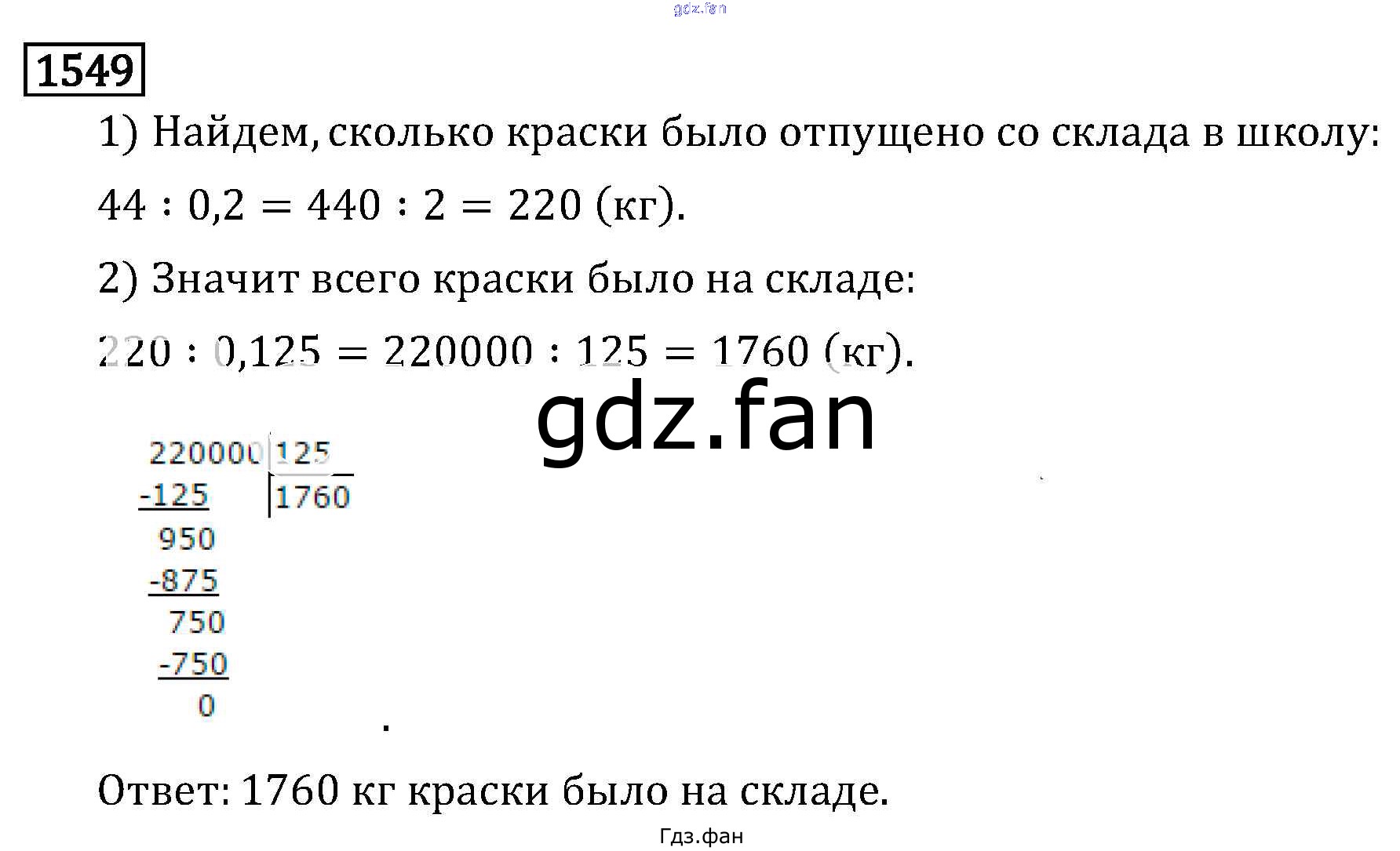 Проверка домашнего задания всегда занимает большое количество времени. На помощь приходит ГДЗ фан по Математике шестого класса. Здесь собраны популярные ответы на 1549 (стр. 274) Математика 6 класс Виленкин Н.Я.