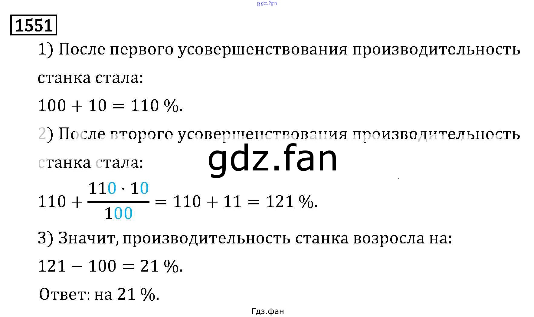 Проверка домашнего задания всегда занимает большое количество времени. На помощь приходит ГДЗ фан по Математике шестого класса. Здесь собраны популярные ответы на 1551 (стр. 274) Математика 6 класс Виленкин Н.Я.