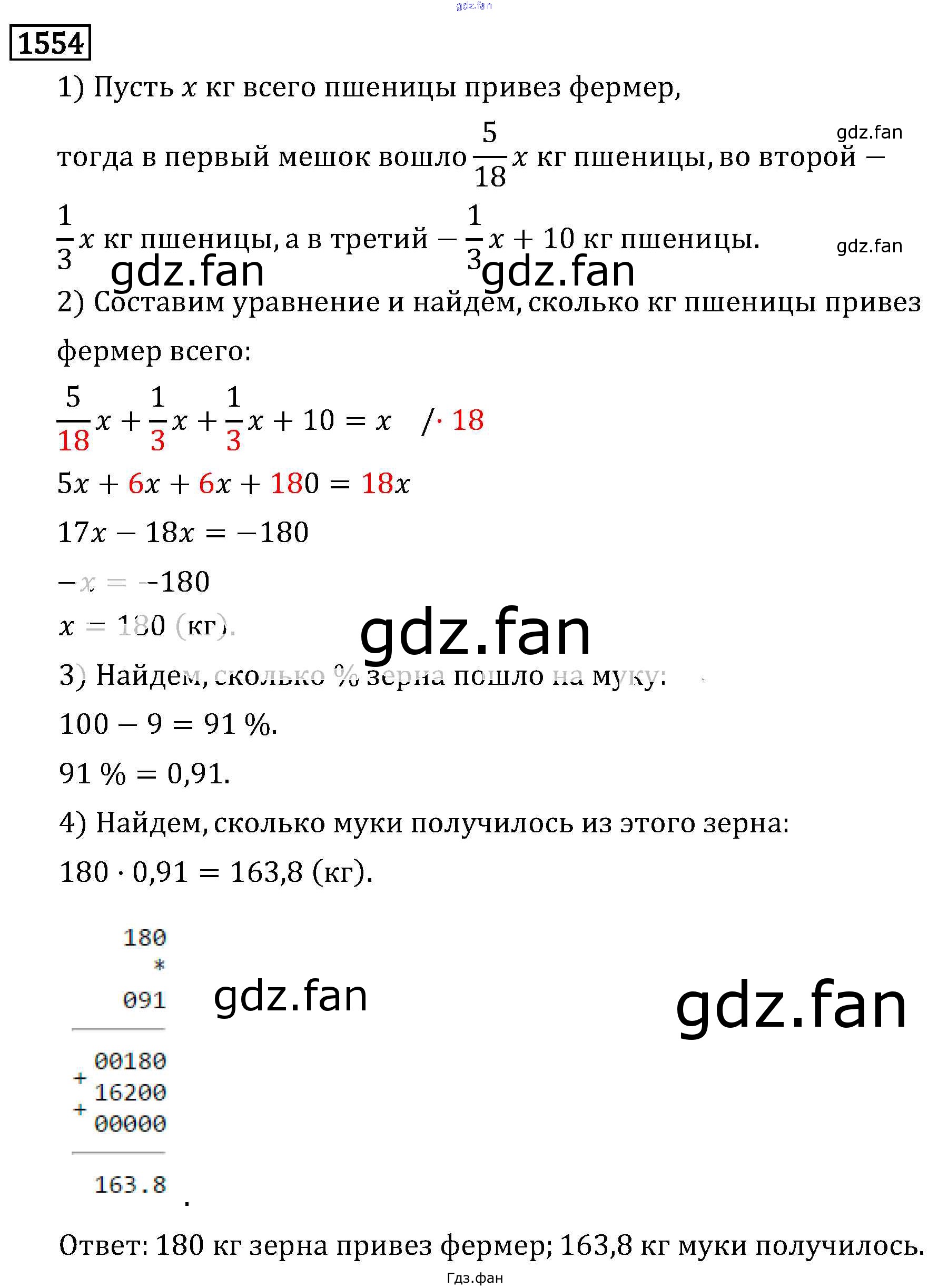 Проверка домашнего задания всегда занимает большое количество времени. На помощь приходит ГДЗ фан по Математике шестого класса. Здесь собраны популярные ответы на 1554 (стр. 274) Математика 6 класс Виленкин Н.Я.