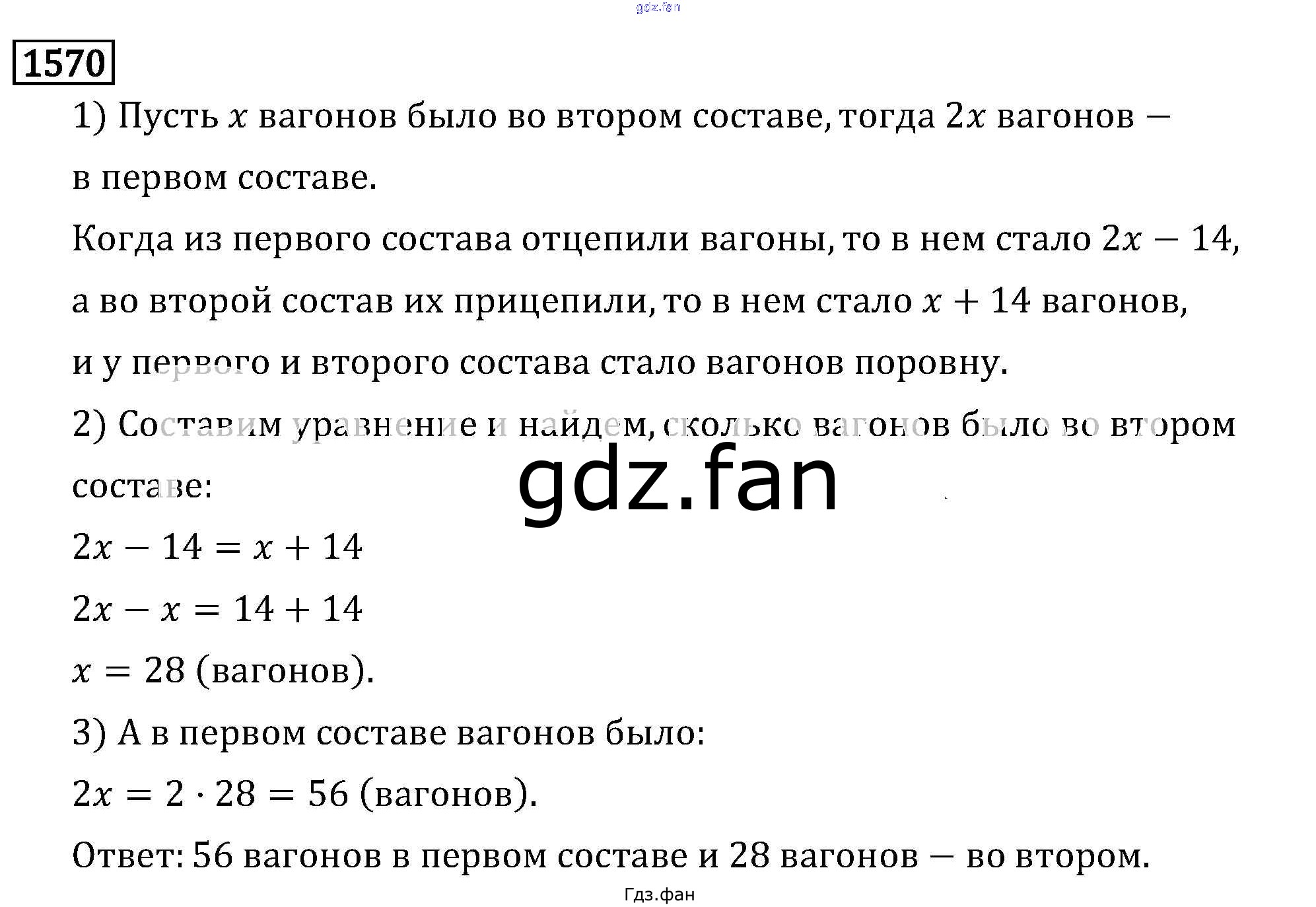 Проверка домашнего задания всегда занимает большое количество времени. На помощь приходит ГДЗ фан по Математике шестого класса. Здесь собраны популярные ответы на 1570 (стр. 276) Математика 6 класс Виленкин Н.Я.