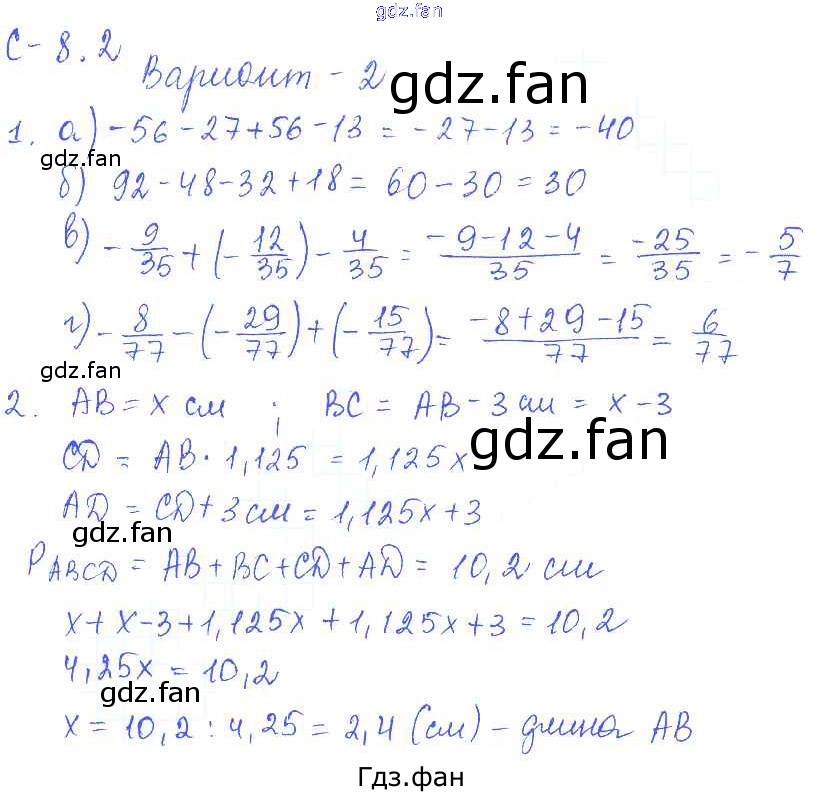 Проверка домашнего задания всегда занимает большое количество времени. На помощь приходит ГДЗ фан по Математике шестого класса. Здесь собраны популярные ответы на вариант 2 (стр. 34) Математика 6 класс самостоятельные работы Зубарева И.И.