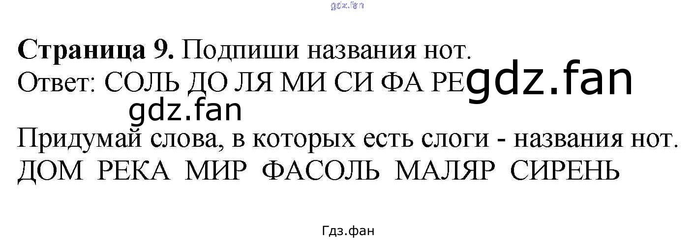 Проверка домашнего задания всегда занимает большое количество времени. На помощь приходит ГДЗ фан по Музыке первого класса. Здесь собраны популярные ответы на стр. 9 Музыка 1 класс рабочая тетрадь Критская Е.Д.
