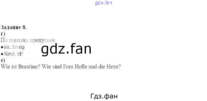 Проверка домашнего задания всегда занимает большое количество времени. На помощь приходит ГДЗ фан по Немецкому языку второго класса. Здесь собраны популярные ответы на 8 (стр. 83) Немецкий язык 2 класс Бим И.Л.