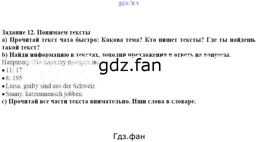 Проверка домашнего задания всегда занимает большое количество времени. На помощь приходит ГДЗ фан по Немецкому языку пятого класса. Здесь собраны популярные ответы на 12 (стр. 74) Немецкий язык 5 класс Аверин М.М.