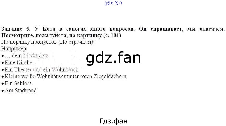 Проверка домашнего задания всегда занимает большое количество времени. На помощь приходит ГДЗ фан по Немецкому языку пятого класса. Здесь собраны популярные ответы на 5 (стр. 102) Немецкий язык 5 класс Бим И.Л.