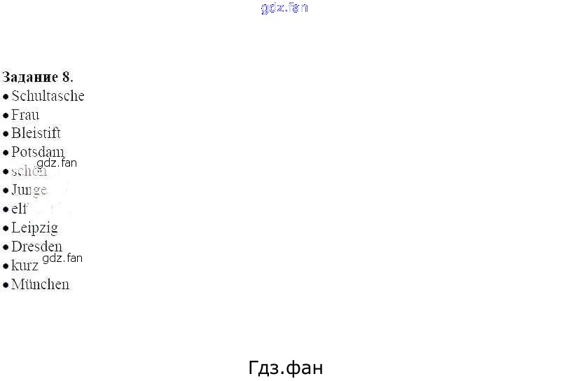 Проверка домашнего задания всегда занимает большое количество времени. На помощь приходит ГДЗ фан по Немецкому языку пятого класса. Здесь собраны популярные ответы на 8 (стр. 31) Немецкий язык 5 класс рабочая тетрадь Alles klar! Радченко О.А.