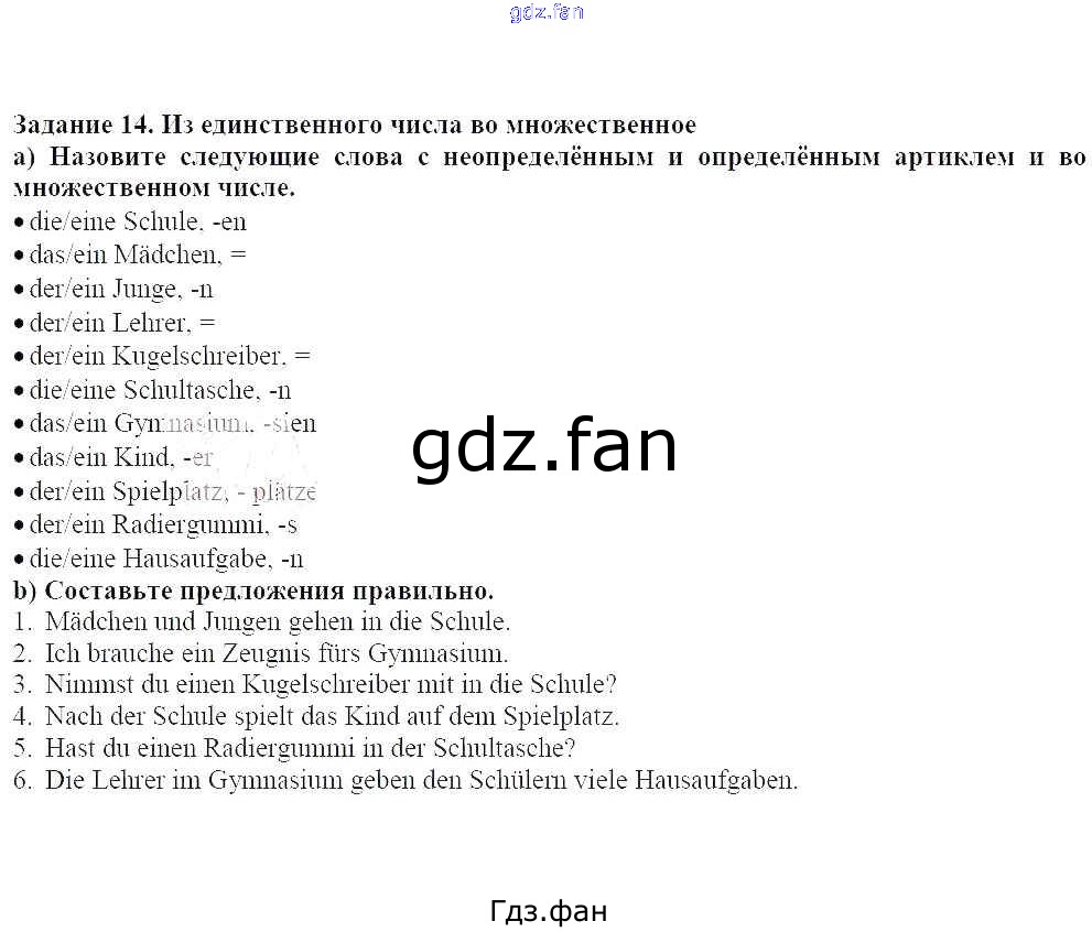 Проверка домашнего задания всегда занимает большое количество времени. На помощь приходит ГДЗ фан по Немецкому языку пятого класса. Здесь собраны популярные ответы на 14 (стр. 33) Немецкий язык 5 класс Яковлева Л.Н.