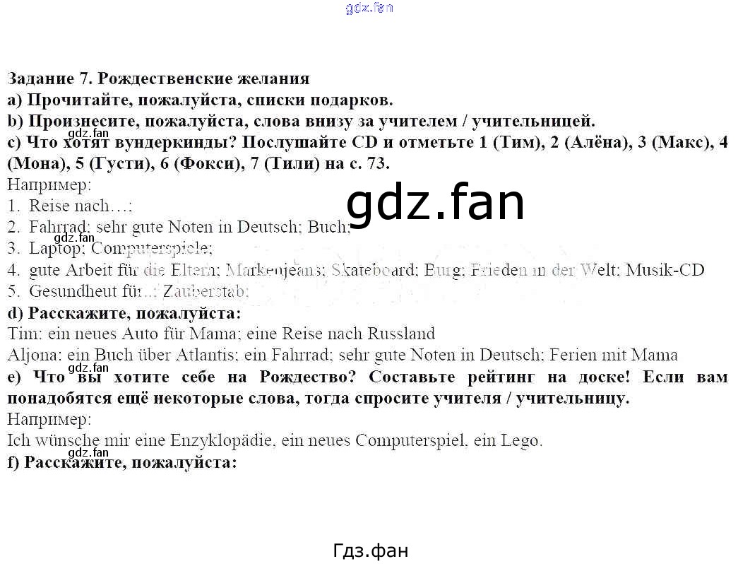Проверка домашнего задания всегда занимает большое количество времени. На помощь приходит ГДЗ фан по Немецкому языку пятого класса. Здесь собраны популярные ответы на 7 (стр. 73) Немецкий язык 5 класс Яцковская Г.В.