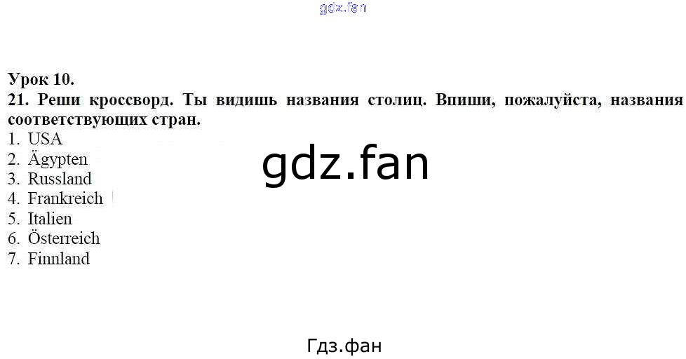 Проверка домашнего задания всегда занимает большое количество времени. На помощь приходит ГДЗ фан по Немецкому языку седьмого класса. Здесь собраны популярные ответы на 21 (стр. 21) Немецкий язык 7 класс рабочая тетрадь Wunderkinder Радченко О.А.