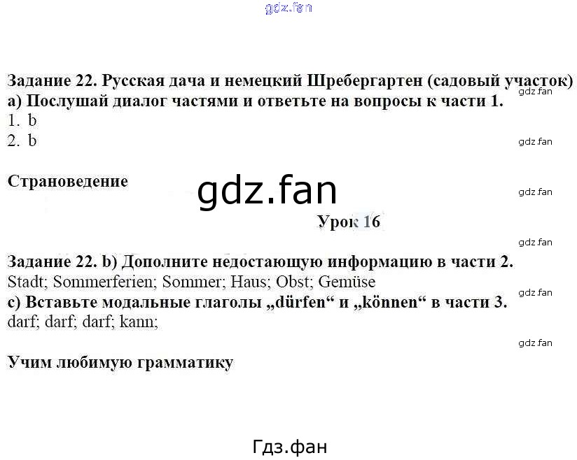 Проверка домашнего задания всегда занимает большое количество времени. На помощь приходит ГДЗ фан по Немецкому языку седьмого класса. Здесь собраны популярные ответы на 22 (стр. 43-44) Немецкий язык 7 класс Wunderkinder Радченко О.А.