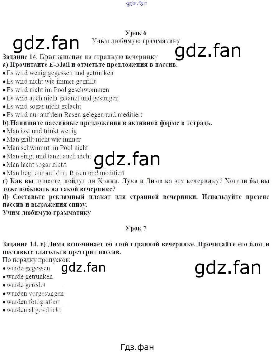 Проверка домашнего задания всегда занимает большое количество времени. На помощь приходит ГДЗ фан по Немецкому языку восьмого класса. Здесь собраны популярные ответы на 14 (стр. 182) Немецкий язык 8 класс Wunderkinder Plus Радченко О.А.