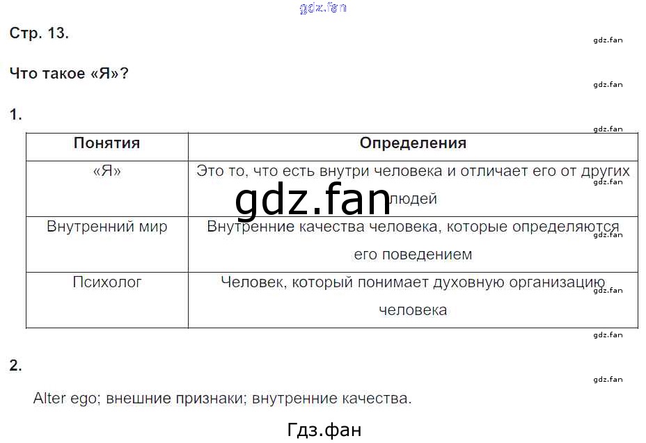 Проверка домашнего задания всегда занимает большое количество времени. На помощь приходит ГДЗ фан по Обществознанию пятого класса. Здесь собраны популярные ответы на 13 (Что такое «Я»? № 1, 2) Обществознание 5 класс рабочая тетрадь Болотина Т.В. (к уч. Никитина)