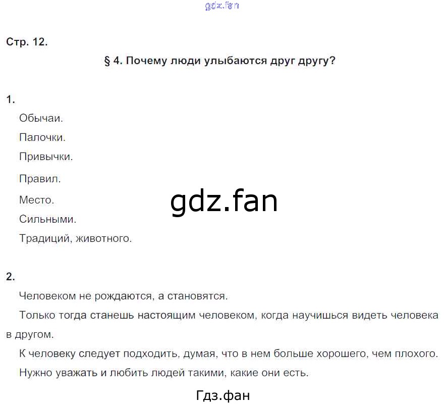 Проверка домашнего задания всегда занимает большое количество времени. На помощь приходит ГДЗ фан по Обществознанию шестого класса. Здесь собраны популярные ответы на 12 (§4. Почему люди улыбаются друг другу? № 1, 2) Обществознание 6 класс рабочая тетрадь Федорова С.А. (к уч. Никитина)