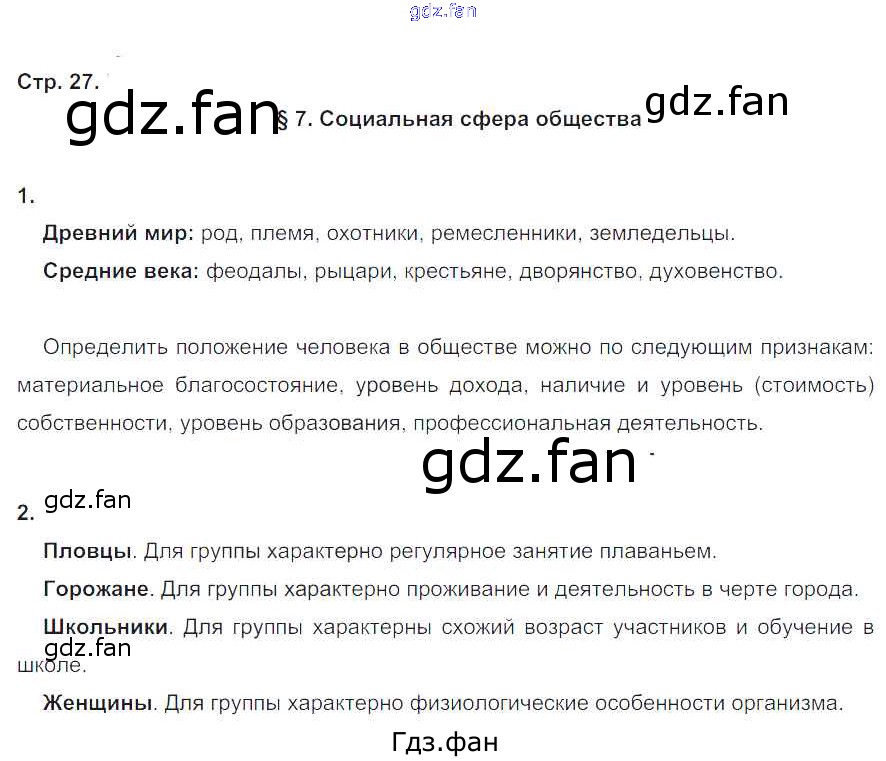 Проверка домашнего задания всегда занимает большое количество времени. На помощь приходит ГДЗ фан по Обществознанию шестого класса. Здесь собраны популярные ответы на 27 (§7. Социальная сфера общества № 1, 2) Обществознание 6 класс рабочая тетрадь Хромова И.С. (к уч. Кравченко)