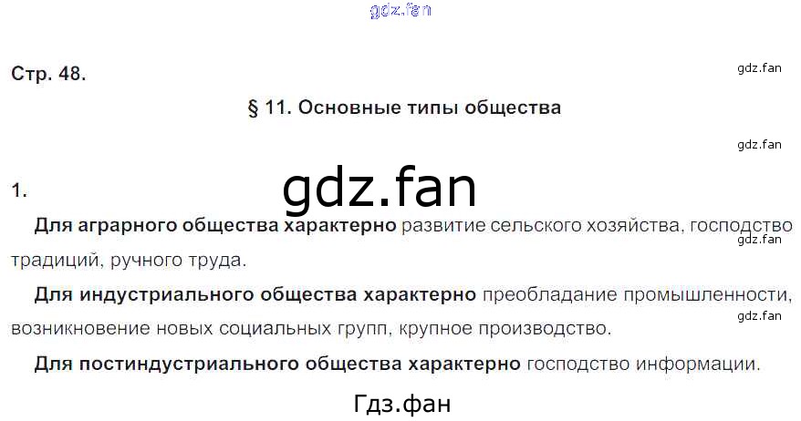 Проверка домашнего задания всегда занимает большое количество времени. На помощь приходит ГДЗ фан по Обществознанию шестого класса. Здесь собраны популярные ответы на 48 (§11. Основные типы общества № 1) Обществознание 6 класс рабочая тетрадь Хромова И.С. (к уч. Кравченко)