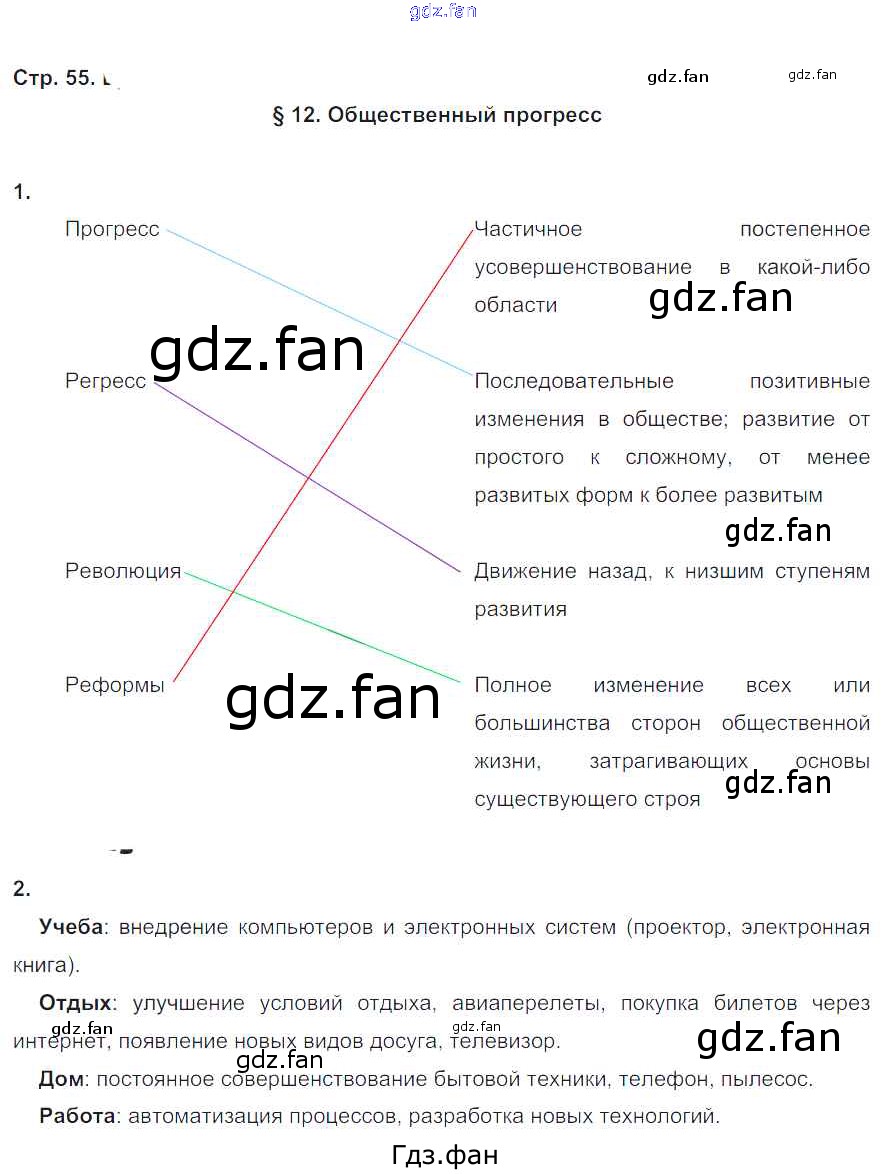 Проверка домашнего задания всегда занимает большое количество времени. На помощь приходит ГДЗ фан по Обществознанию шестого класса. Здесь собраны популярные ответы на 55 (§12. Общественный прогресс № 1, 2) Обществознание 6 класс рабочая тетрадь Хромова И.С. (к уч. Кравченко)