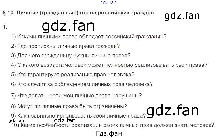 Проверка домашнего задания всегда занимает большое количество времени. На помощь приходит ГДЗ фан по Обществознанию седьмого класса. Здесь собраны популярные ответы на 53 (§10. Личные (гражданские) права российских граждан № 1) Обществознание 7 класс рабочая тетрадь Хромова И.С. (к уч. Певцовой)