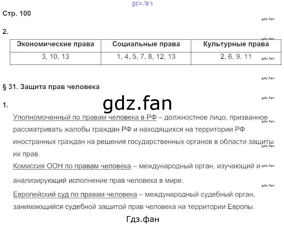 Проверка домашнего задания всегда занимает большое количество времени. На помощь приходит ГДЗ фан по Обществознанию восьмого класса. Здесь собраны популярные ответы на 100 (№ 2. §31. Защита прав человека № 1) Обществознание 8 класс рабочая тетрадь Федорова С.А.