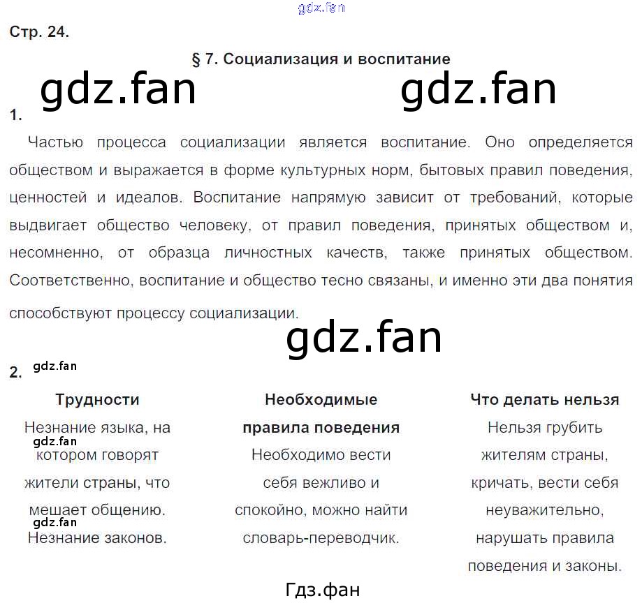 Проверка домашнего задания всегда занимает большое количество времени. На помощь приходит ГДЗ фан по Обществознанию восьмого класса. Здесь собраны популярные ответы на 24 (§7. Социализация и воспитание № 1, 2) Обществознание 8 класс рабочая тетрадь Хромова И.С. (к уч. Кравченко)