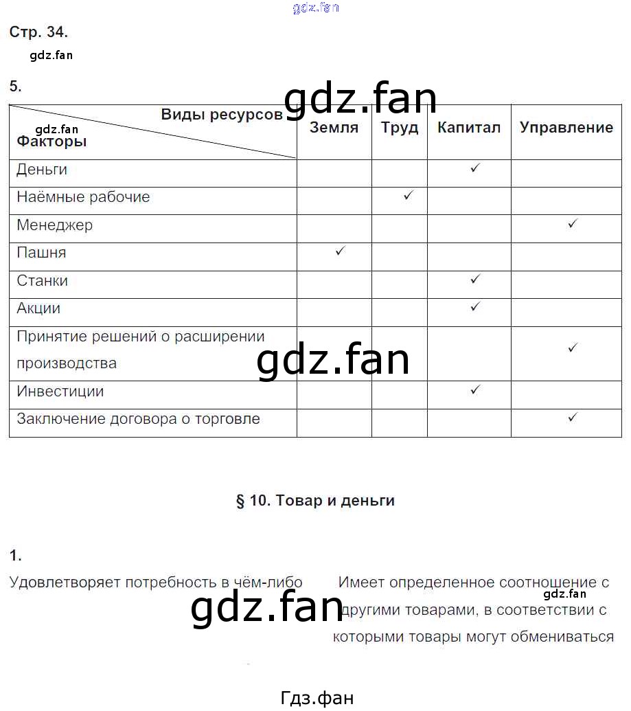 Проверка домашнего задания всегда занимает большое количество времени. На помощь приходит ГДЗ фан по Обществознанию восьмого класса. Здесь собраны популярные ответы на 34 (№ 5. §10. Товар и деньги № 1) Обществознание 8 класс рабочая тетрадь Хромова И.С. (к уч. Кравченко)