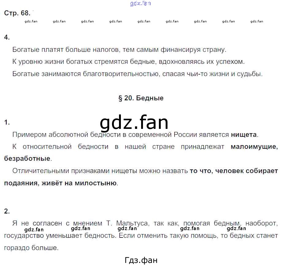 Проверка домашнего задания всегда занимает большое количество времени. На помощь приходит ГДЗ фан по Обществознанию восьмого класса. Здесь собраны популярные ответы на 68 (№ 4. §20. Бедные № 1, 2) Обществознание 8 класс рабочая тетрадь Хромова И.С. (к уч. Кравченко)