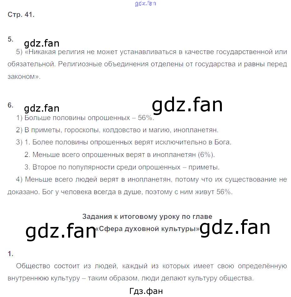 Проверка домашнего задания всегда занимает большое количество времени. На помощь приходит ГДЗ фан по Обществознанию восьмого класса. Здесь собраны популярные ответы на 41 (№ 6. Итоговый урок № 1) Обществознание 8 класс рабочая тетрадь Котова О.А.