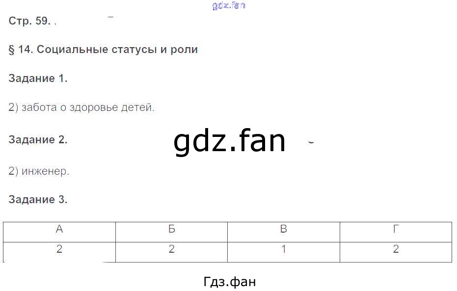 Проверка домашнего задания всегда занимает большое количество времени. На помощь приходит ГДЗ фан по Обществознанию восьмого класса. Здесь собраны популярные ответы на 59 (§14. Социальные статусы и роли № 1, 2, 3) Обществознание 8 класс рабочая тетрадь Митькин А.С. (к уч. Боголюбова)