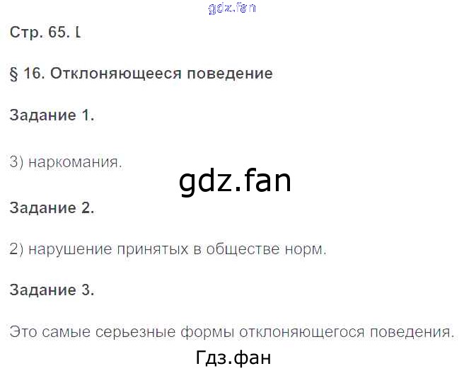 Проверка домашнего задания всегда занимает большое количество времени. На помощь приходит ГДЗ фан по Обществознанию восьмого класса. Здесь собраны популярные ответы на 65 (§16. Отклоняющееся поведение № 1, 2, 3) Обществознание 8 класс рабочая тетрадь Митькин А.С. (к уч. Боголюбова)