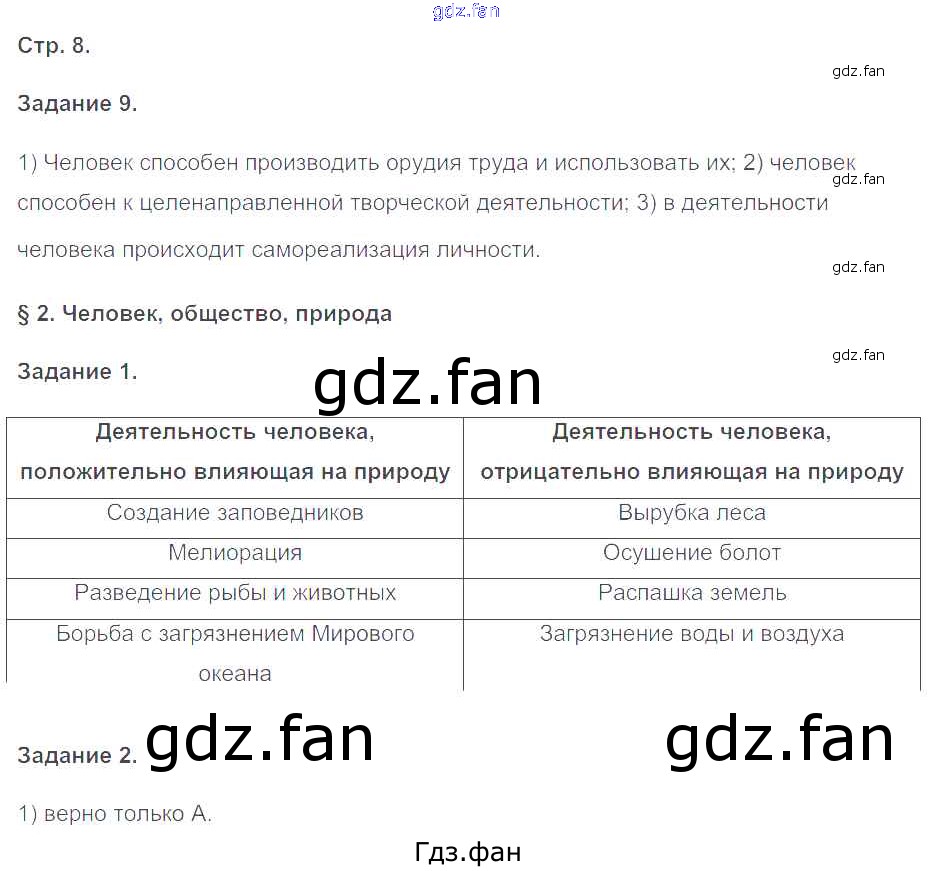 Проверка домашнего задания всегда занимает большое количество времени. На помощь приходит ГДЗ фан по Обществознанию восьмого класса. Здесь собраны популярные ответы на 8 (№ 9. §2. Человек, общество, природа № 1, 2) Обществознание 8 класс рабочая тетрадь Митькин А.С. (к уч. Боголюбова)