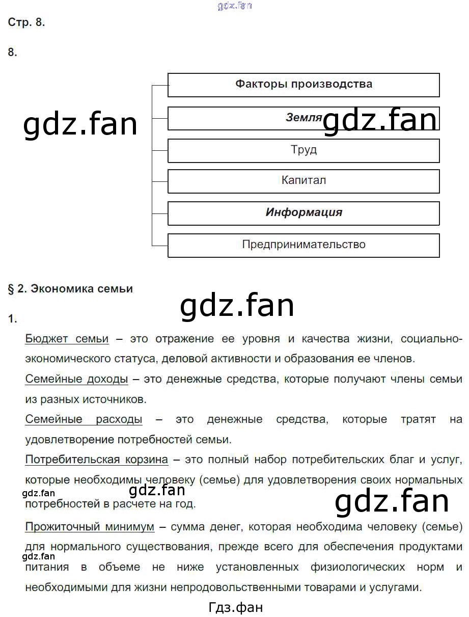 Проверка домашнего задания всегда занимает большое количество времени. На помощь приходит ГДЗ фан по Обществознанию девятого класса. Здесь собраны популярные ответы на 8 (№ 8. §2. Экономика семьи № 1) Обществознание 9 класс рабочая тетрадь Федорова С.А.