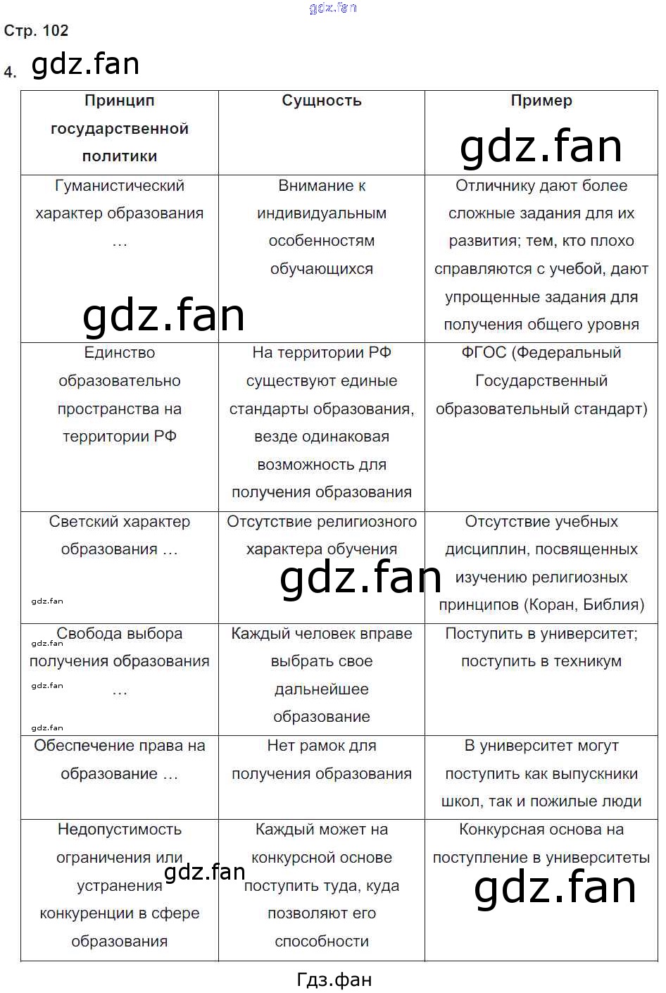 Проверка домашнего задания всегда занимает большое количество времени. На помощь приходит ГДЗ фан по Обществознанию девятого класса. Здесь собраны популярные ответы на 102 (№ 4) Обществознание 9 класс рабочая тетрадь Котова О.А.