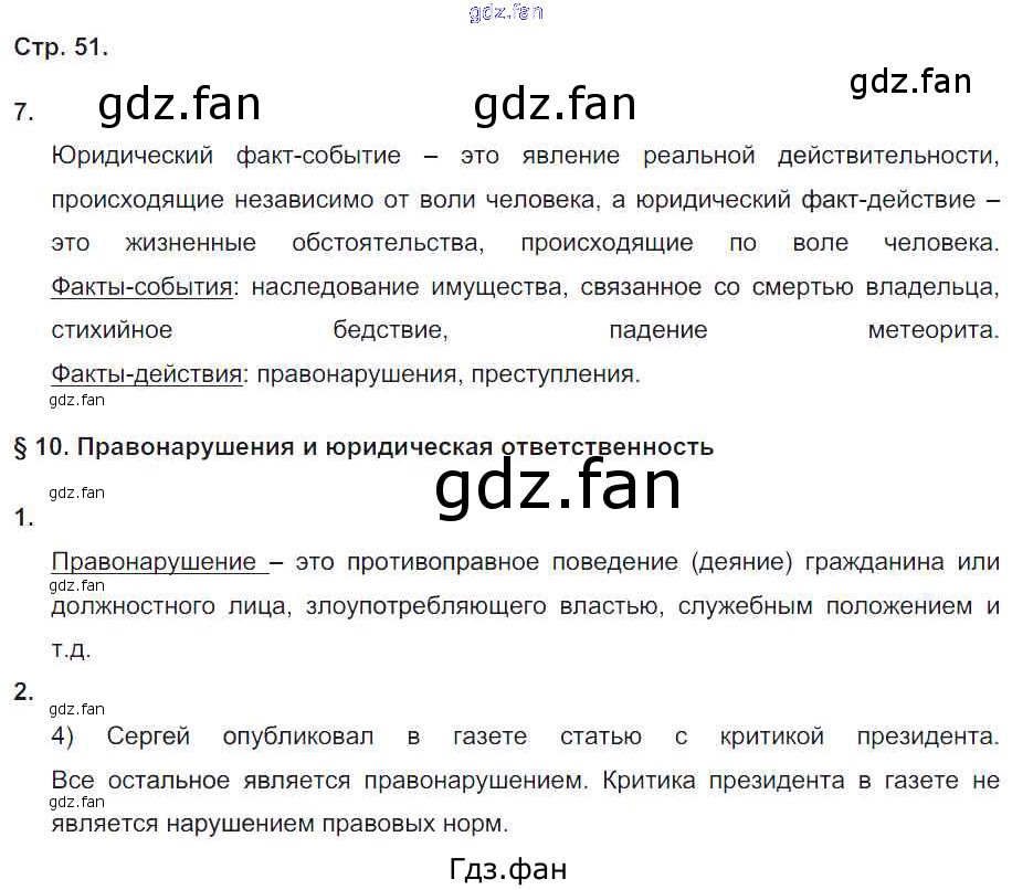 Проверка домашнего задания всегда занимает большое количество времени. На помощь приходит ГДЗ фан по Обществознанию девятого класса. Здесь собраны популярные ответы на 51 (№ 7. §10. Правонарушения и юридическая ответственность № 1, 2) Обществознание 9 класс рабочая тетрадь Котова О.А.