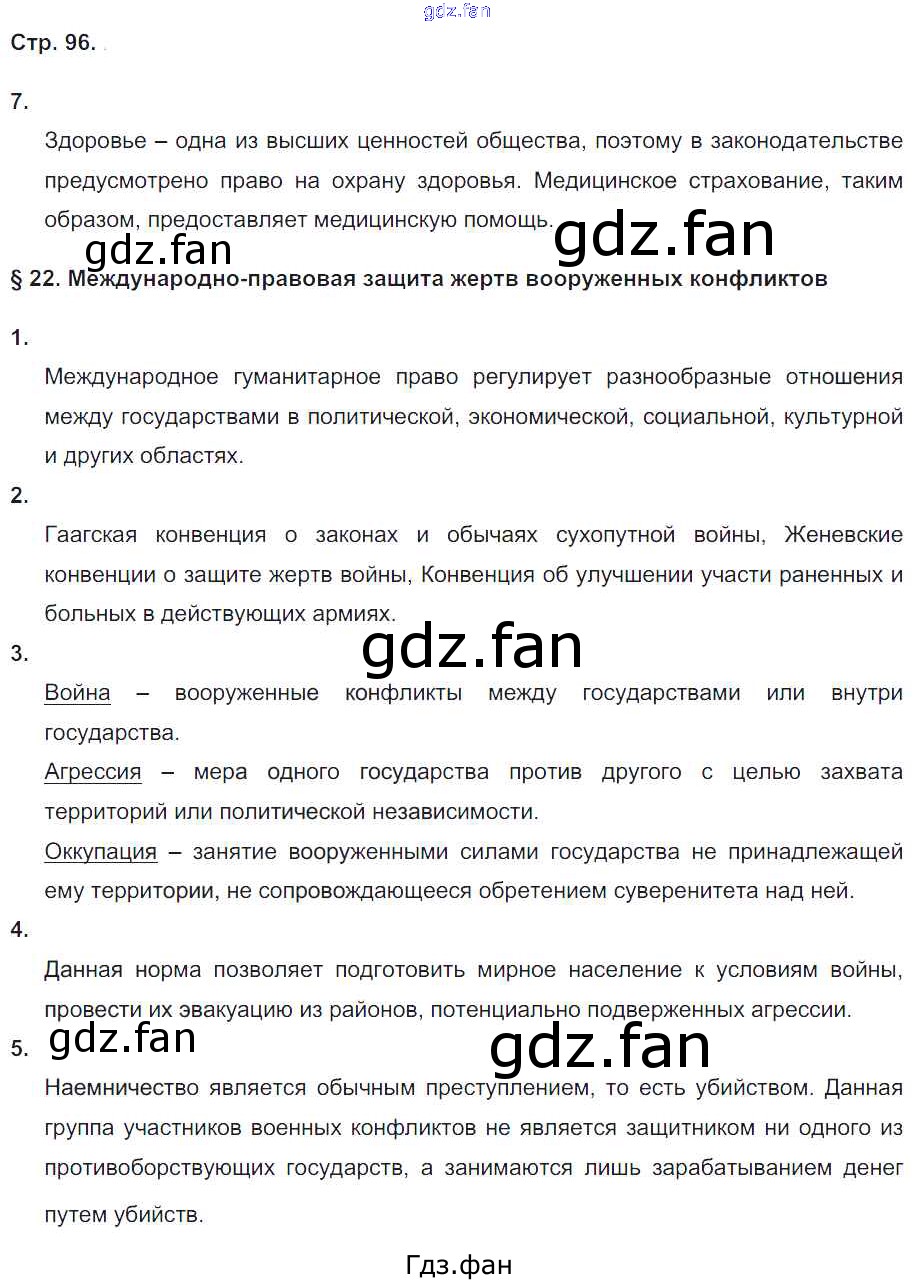 Проверка домашнего задания всегда занимает большое количество времени. На помощь приходит ГДЗ фан по Обществознанию девятого класса. Здесь собраны популярные ответы на 96 (№ 7. §22. Международно-правовая защита жертв вооружённых конфликтов № 1, 2, 3, 4, 5) Обществознание 9 класс рабочая тетрадь Котова О.А.