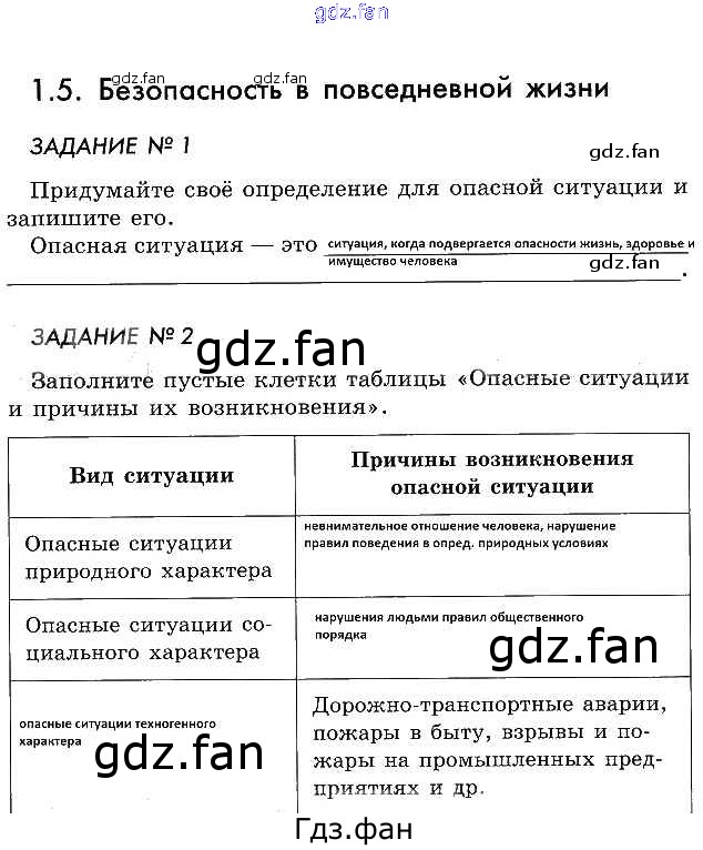 Проверка домашнего задания всегда занимает большое количество времени. На помощь приходит ГДЗ фан по ОБЖ пятого класса. Здесь собраны популярные ответы на §5 (стр. 13-14) ОБЖ 5 класс рабочая тетрадь Смирнов А.Т.