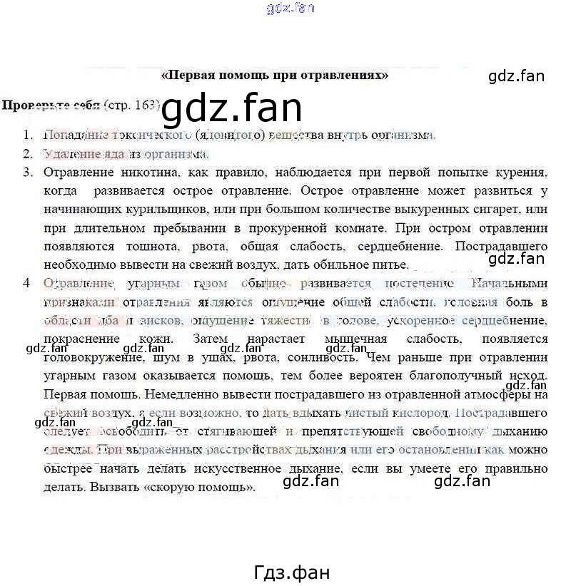 Проверка домашнего задания всегда занимает большое количество времени. На помощь приходит ГДЗ фан по ОБЖ пятого класса. Здесь собраны популярные ответы на 163 (проверьте себя №1-4) ОБЖ 5 класс Смирнов А.Т.