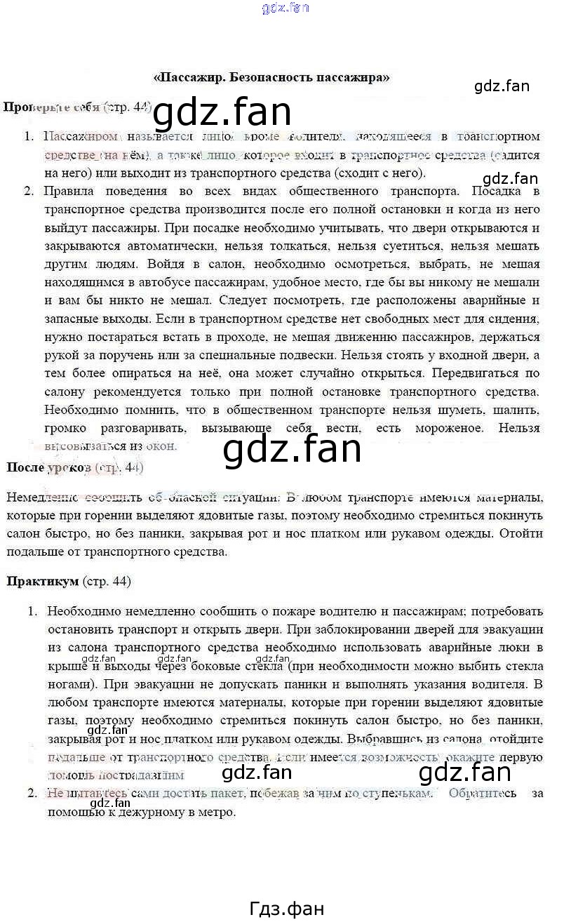 Проверка домашнего задания всегда занимает большое количество времени. На помощь приходит ГДЗ фан по ОБЖ пятого класса. Здесь собраны популярные ответы на 44 (проверьте себя №1-2, после уроков, практикум) ОБЖ 5 класс Смирнов А.Т.