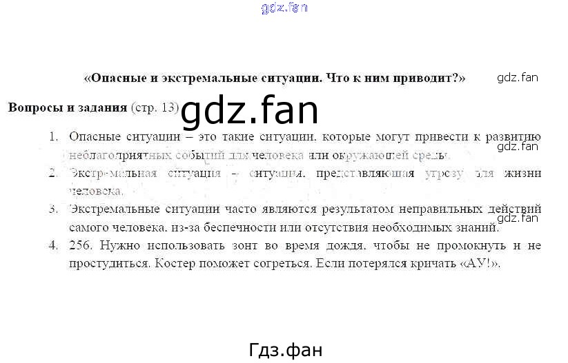 Проверка домашнего задания всегда занимает большое количество времени. На помощь приходит ГДЗ фан по ОБЖ шестого класса. Здесь собраны популярные ответы на 13 (раздел 1, §1) ОБЖ 6 класс Фролов М.П.