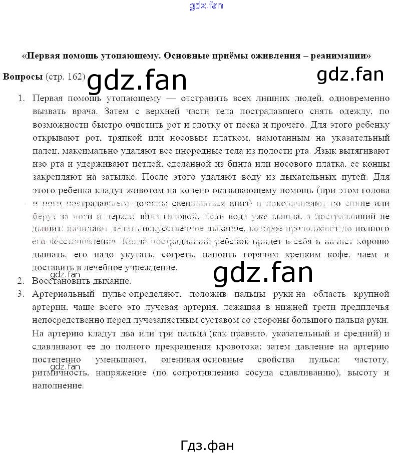 Проверка домашнего задания всегда занимает большое количество времени. На помощь приходит ГДЗ фан по ОБЖ шестого класса. Здесь собраны популярные ответы на 162 (раздел 2, §8) ОБЖ 6 класс Фролов М.П.